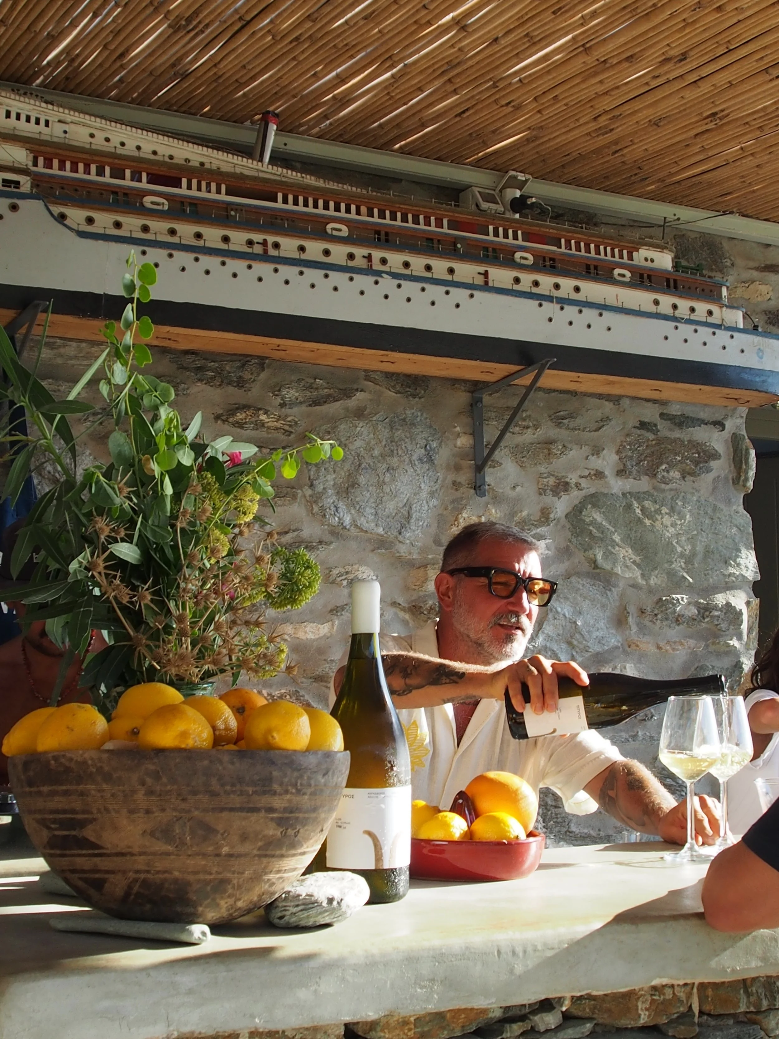 It all begins on a Greek island. A hidden, magical place where encounters unfold. Friends gathering around a long table, glasses filling with wine, food sizzling on the grill. Sky burning orange at sunset. Spina